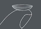 Linse behutsam mit Daumen und Zeigefinger fassen und leicht falten. Vorsicht! Achten Sie darauf, Auge und Contactlinse nicht mit den Fingernägeln zu berühren.